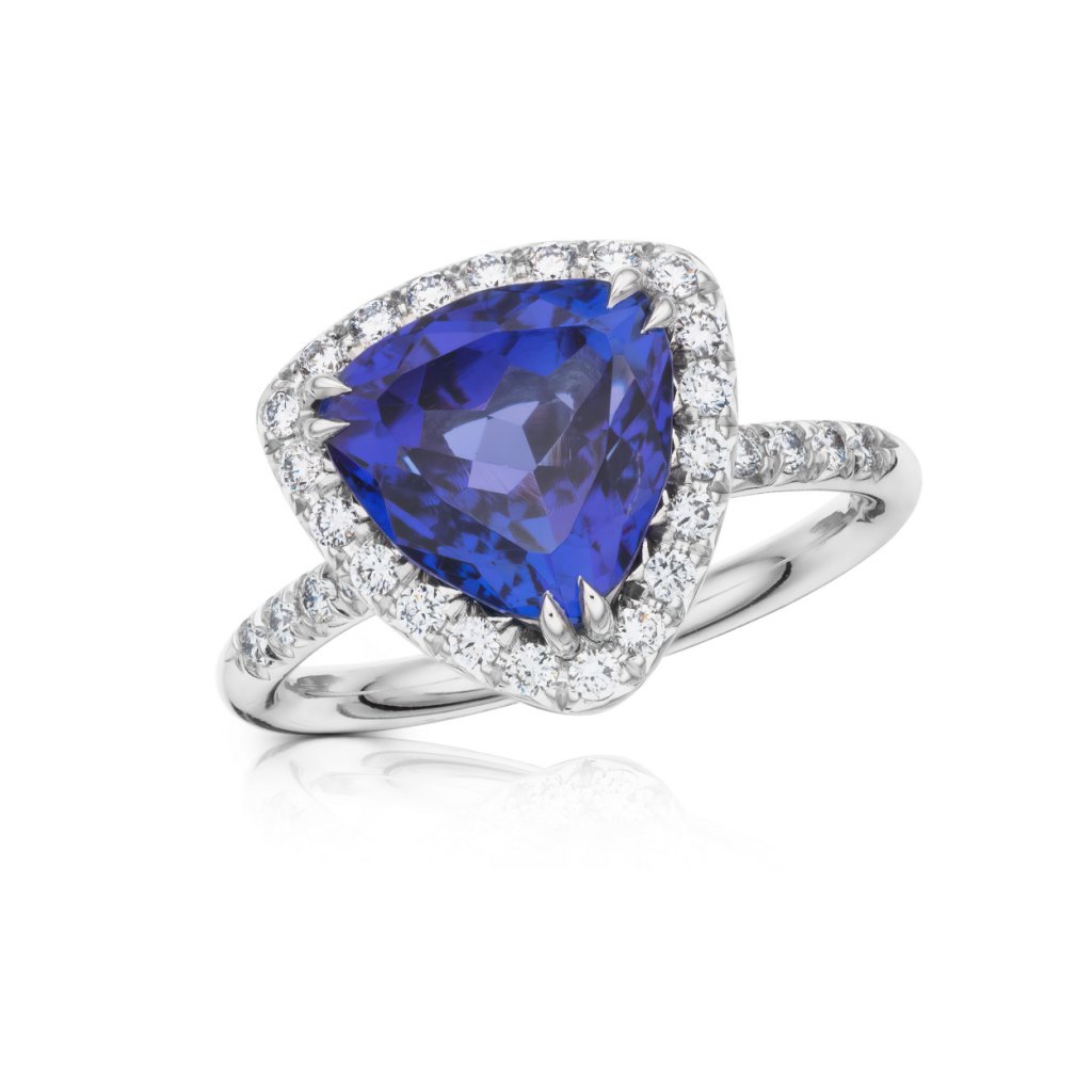 Prsten Galaxy z bílého zlata s Tanzanitem a diamanty briliantového brusu.