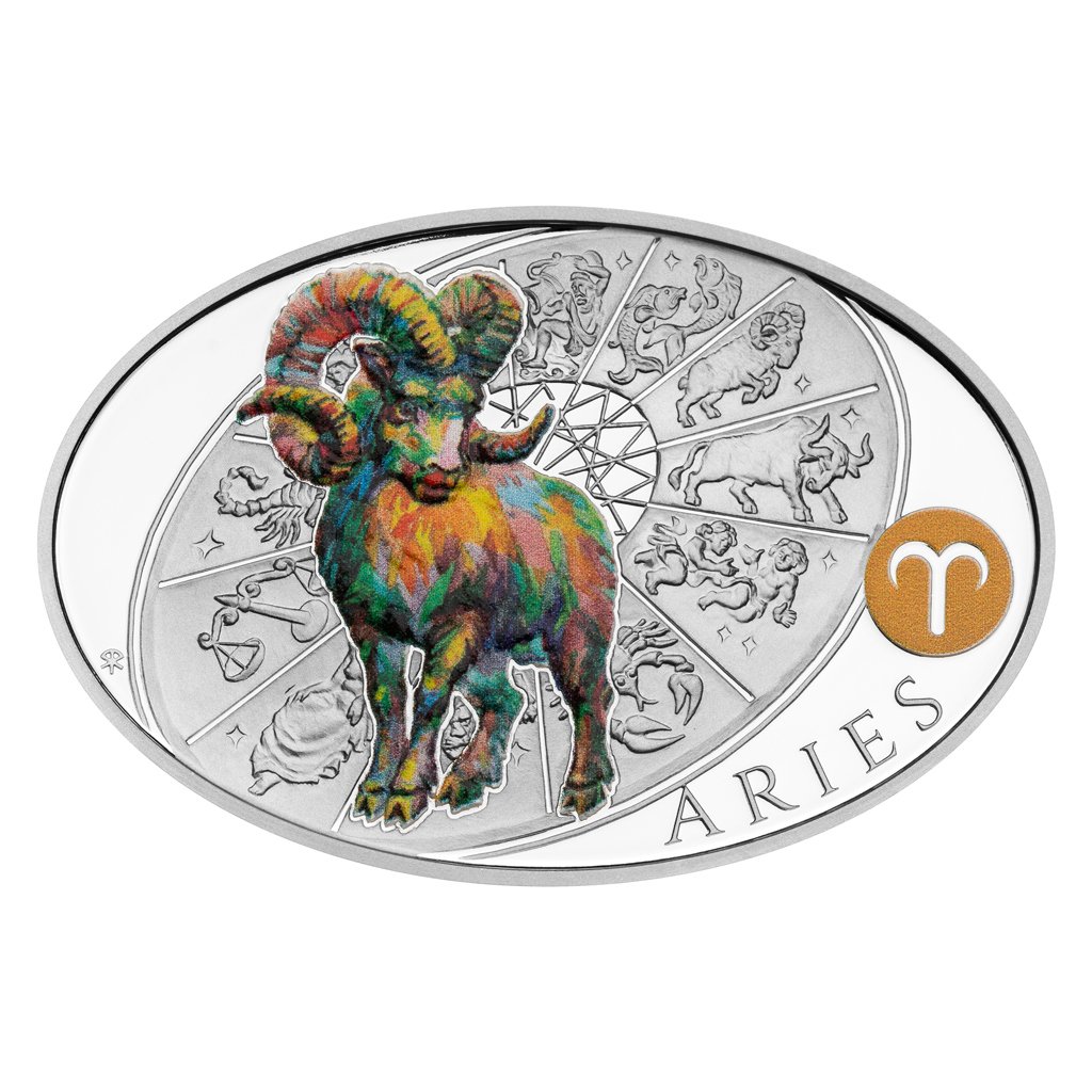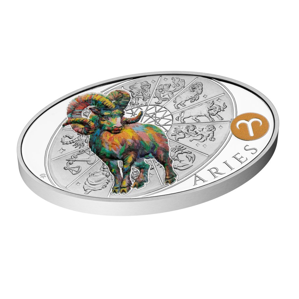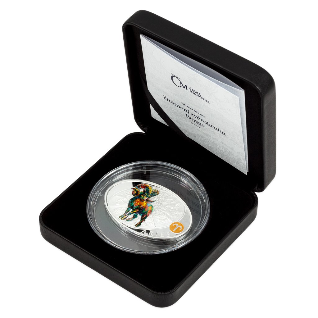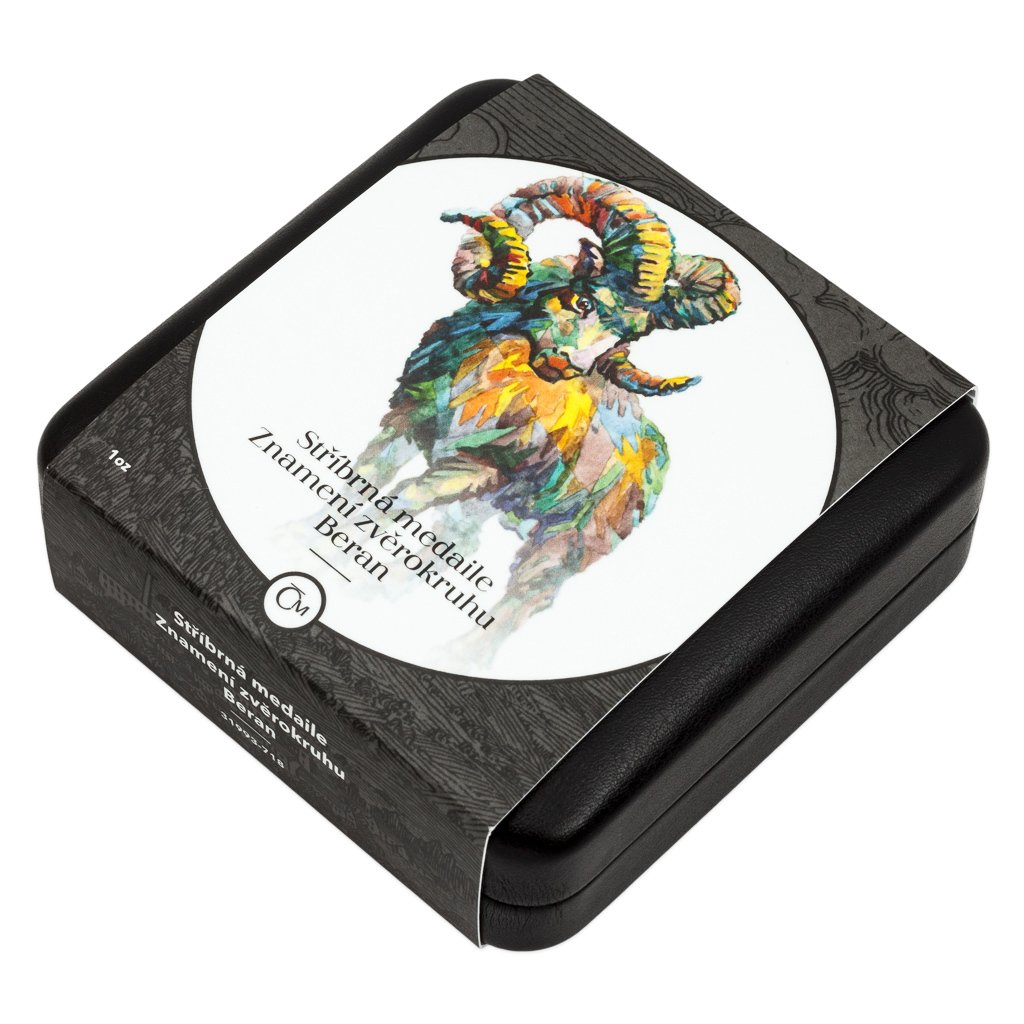 Stříbrná medaile České mincovny z dárkové série s motivy 12 znamení zvěrokruhu se stane nejen krásným, ale také hodnotným talismanem pro každého, kdo se narodil ve znamení Berana.