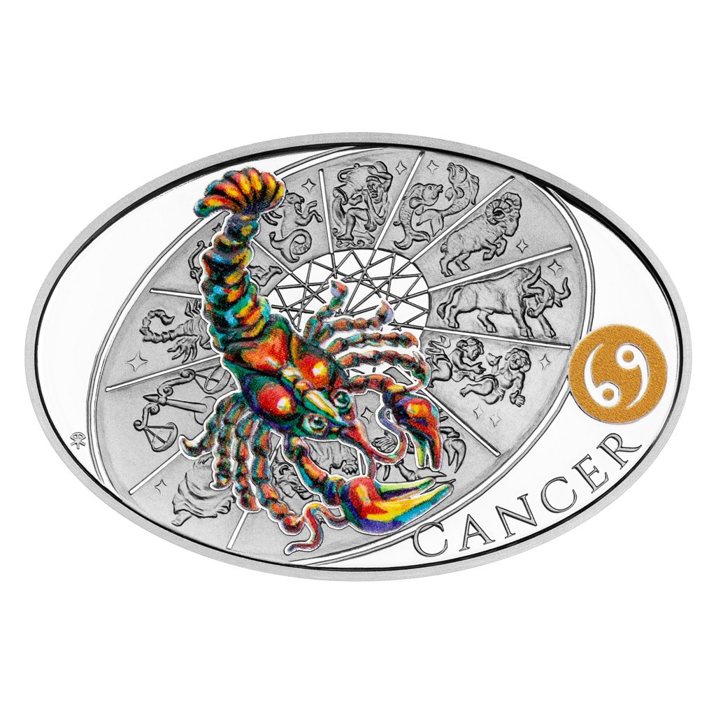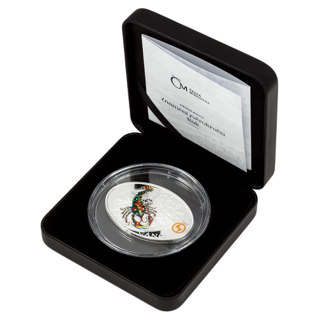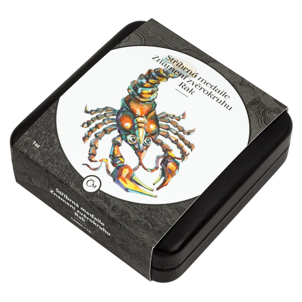 Stříbrná medaile České mincovny z dárkové série s motivy 12 znamení zvěrokruhu se stane nejen krásným, ale také hodnotným talismanem pro každého, kdo se narodil ve znamení Raka.