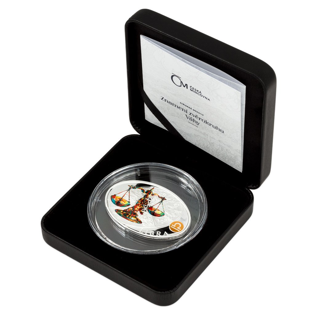 Stříbrná medaile České mincovny z dárkové série s motivy 12 znamení zvěrokruhu se stane nejen krásným, ale také hodnotným talismanem pro každého, kdo se narodil ve znamení Vah.
