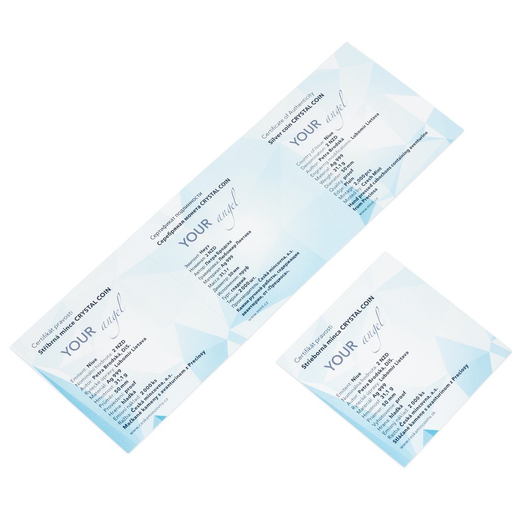 Unikátní stříbrná mince s broušeným českým křišťálem z řady „Crystal Coin“ je výsledkem spojení tradičních jabloneckých řemesel – mincovnictví České mincovny a sklářství společnosti Preciosa. Dárek pro každou příležitost nese motiv anděla.