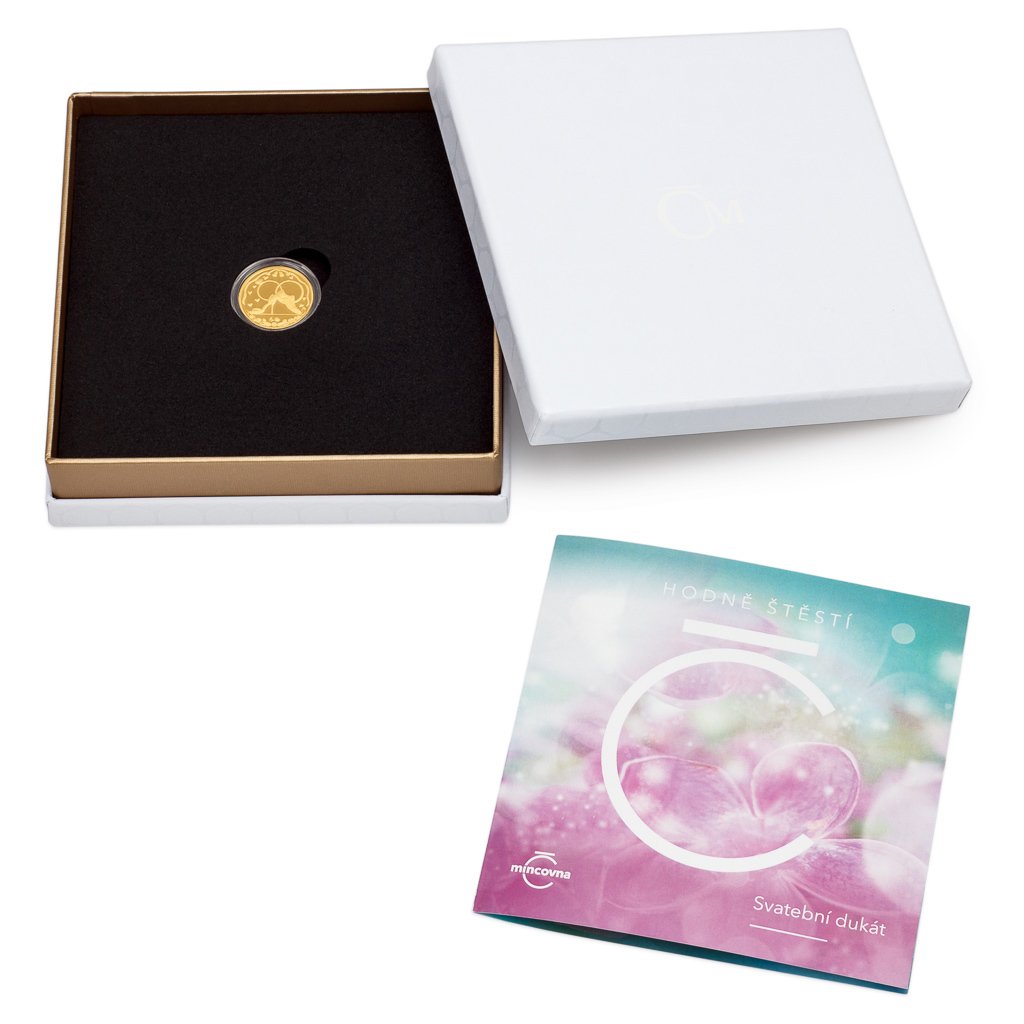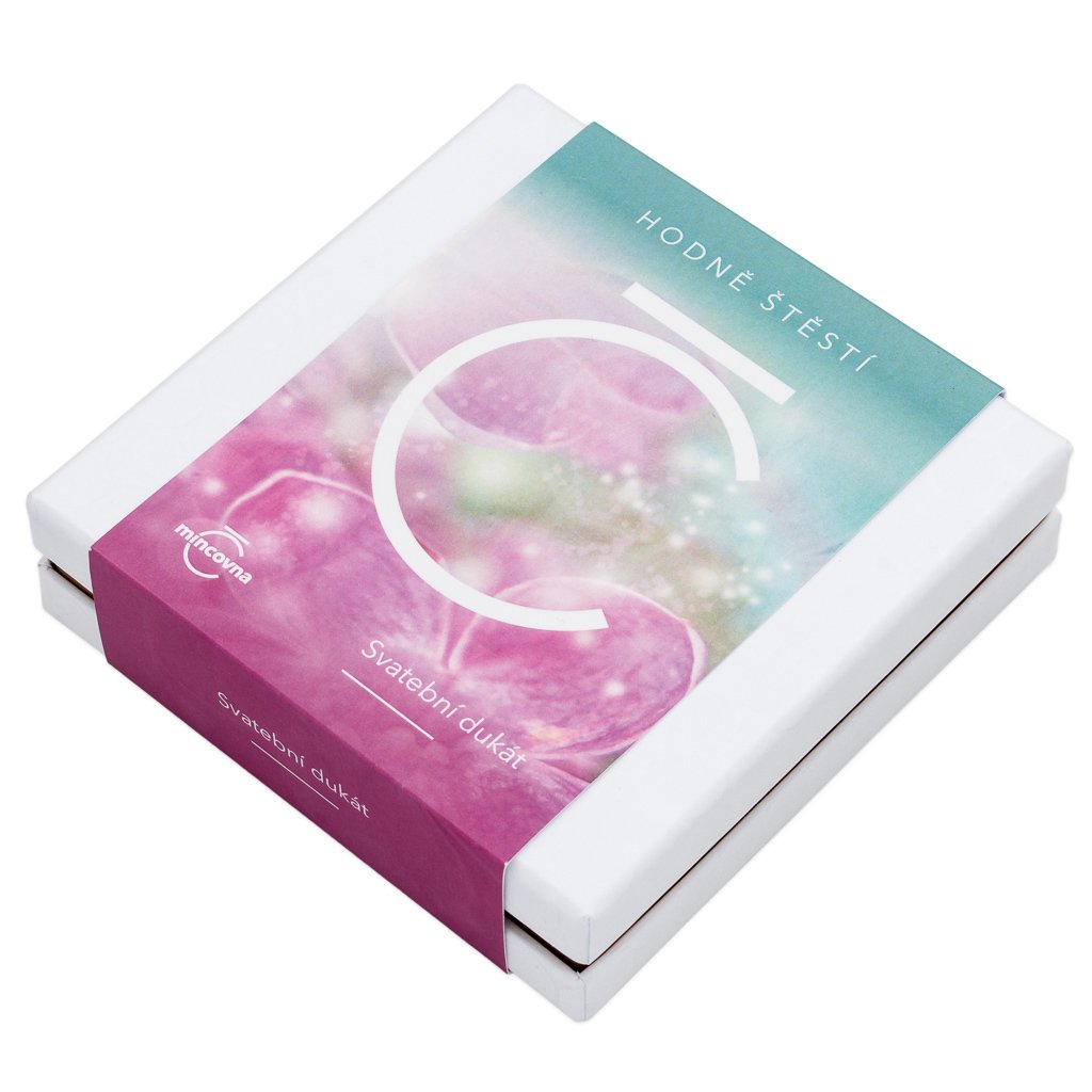 Dárkové balení obsahuje vedle dukátu také certifikát pravosti s prostorem pro vepsání osobního věnování. Nepřehlédněte ani další varianty svatebního penízku – v naší nabídce na rok 2026 najdete dva různé drahé kovy i verze, na které lze vyrýt věnování.